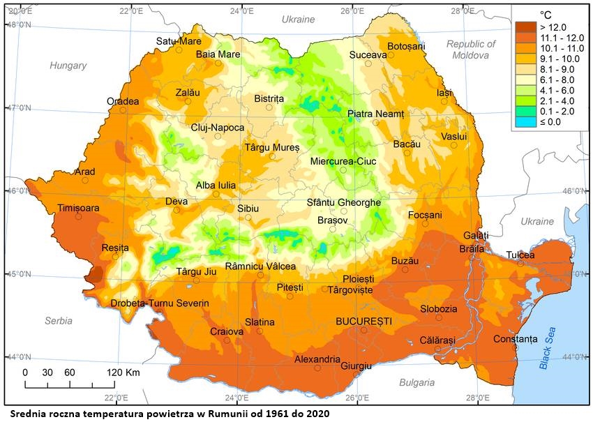 Durchschnittliche jährliche Lufttemperatur in Rumänien von 1961 bis 2020: