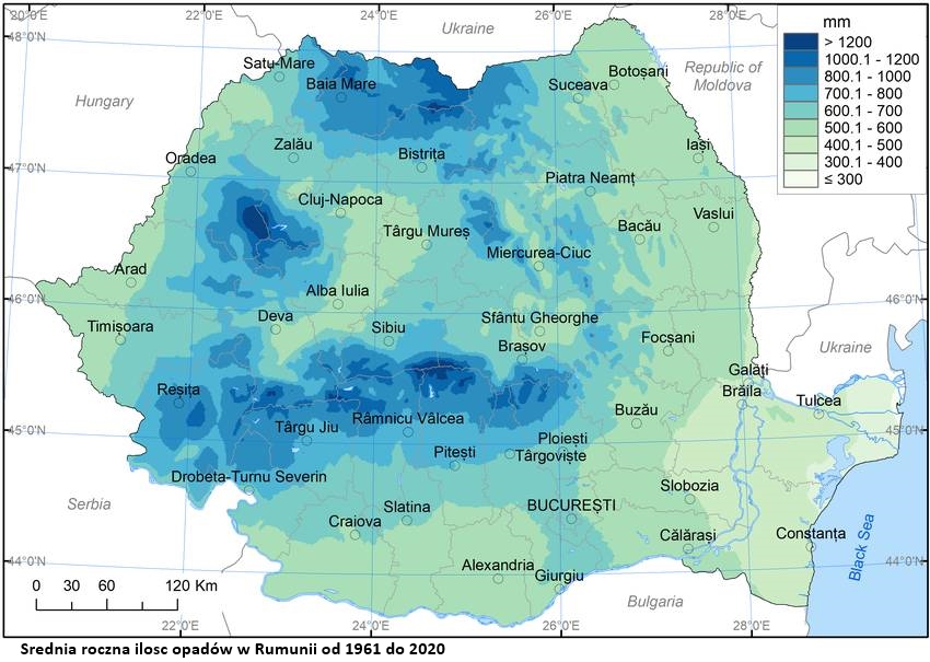 Durchschnittlicher jährlicher Niederschlag in Rumänien von 1961 bis 2020